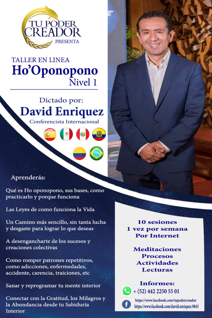 Lleva más de diez años enseñando la Técnica de Ho oponopono por el Mundo, entregando este curso a más de 20,000 personas en México, Perú, Colombia, Brasil, Ecuador y España de forma presencial